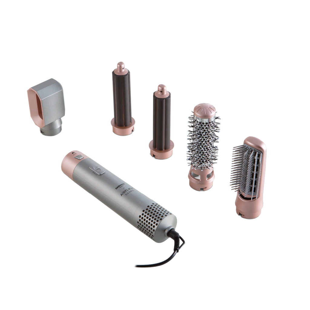 ✅ Incluye 5 accesorios esenciales: cuerpo principal + cabezal secador, peine alisador, cepillo redondo y rizadores automáticos para adaptarlo a cualquier estilo.